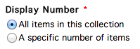 Collections can contain a high number of items in them. If you want to limit the amount of items a collection will display at one time, you can define a number by selecting the "A specific number of items" option.