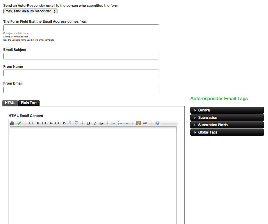 Selecting "Yes, send an auto-responder" shows more fields allowing you to change aspects about the email being sent.